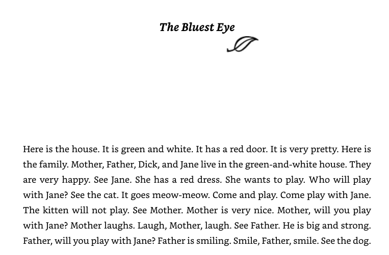 Excerpt from The Bluest Eye by Toni Morrison.