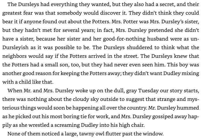Excerpt from Harry Potter and The Sorcerer’s Stone by J.K. Rowling.